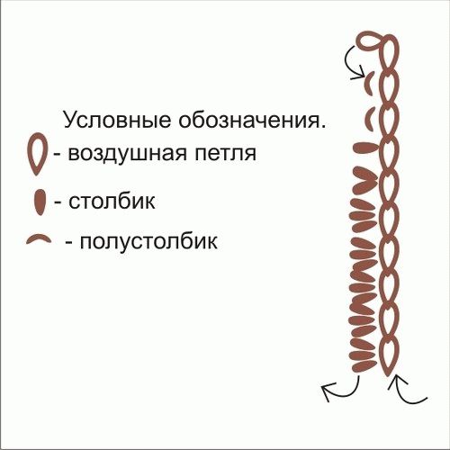 Затем в первую петлю нужно провязать 10 столбиков без накида.