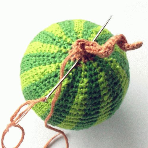 Этот мастер-класс по вязанию арбуза мне понравился.И вязаный арбуз получается,как настоящий!Проверено на себе!