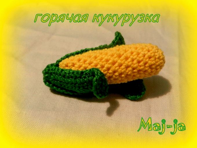 А некоторые задумки не нашли готового решения,пришлось самой выдумывать и воплощать.Так было,например,с горошком,кукурузой и луком.Описания ,как связать самой эти овощи,в таком большом интернете,я не нашла:(Огорчилась и призадумалась.НО не сдалась и придумала сама!