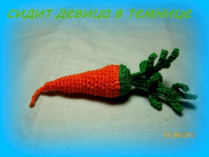 Это уже во мне заговорил логопед.Наверное,поэтому уже почти год я осваиваю тему овощей-фруктов и ягод.Ищу в интернете описания всего,что растет.Мною овладела такая идея-фикс:»вырастить» ,выразить с помощью ниток и крючка и морковку,и арбуз,и даже ёлку:)