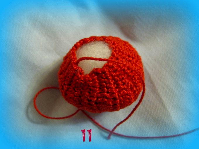Другое отверстие наполняем синтепоном, придаем форму, и также стягиваем по кругу.