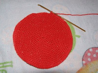 Так как мне не нужна большая долька,я связала только 10 рядов красной нитью.