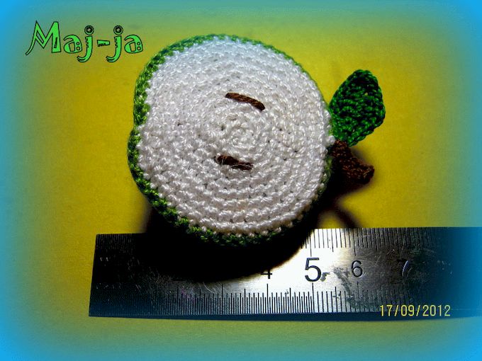 Вяжем фрукты крючком. Как связать половинку яблока.