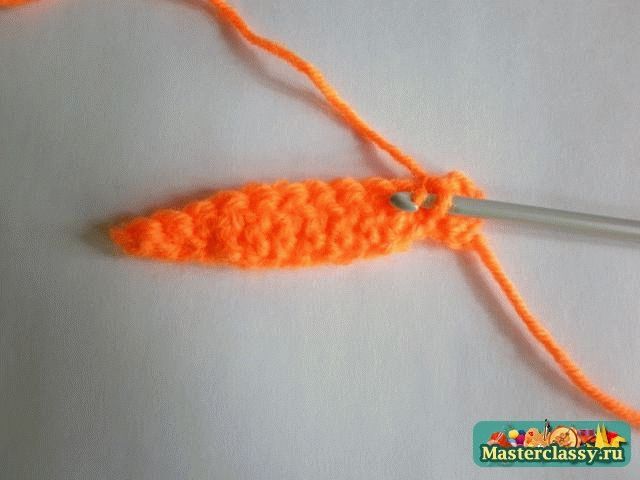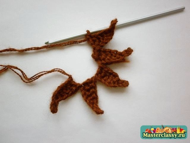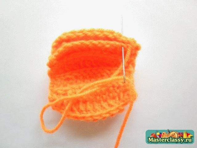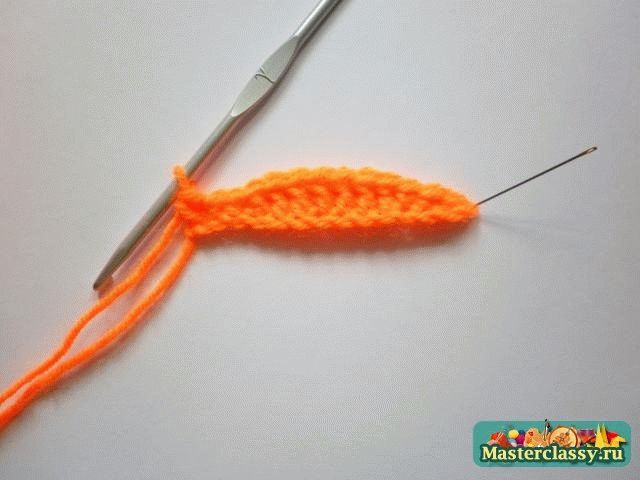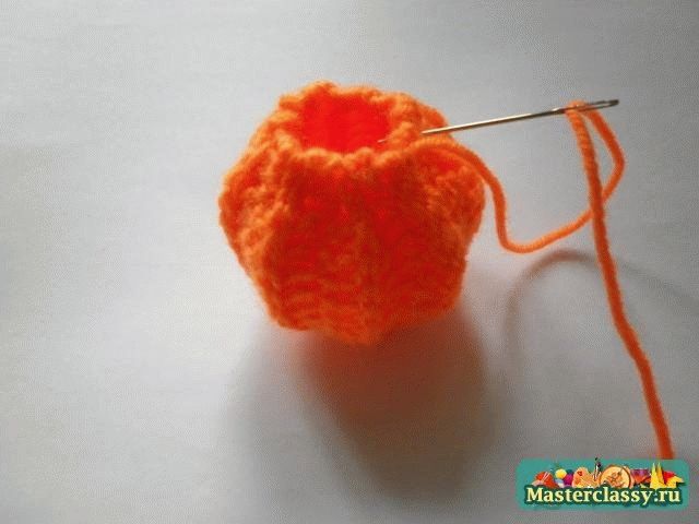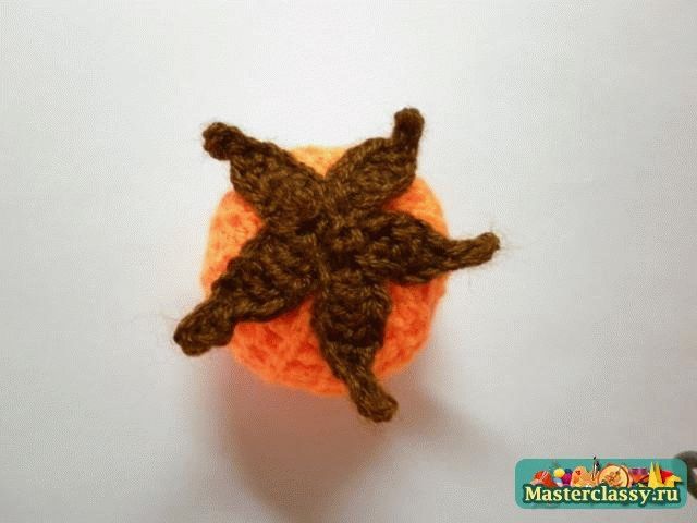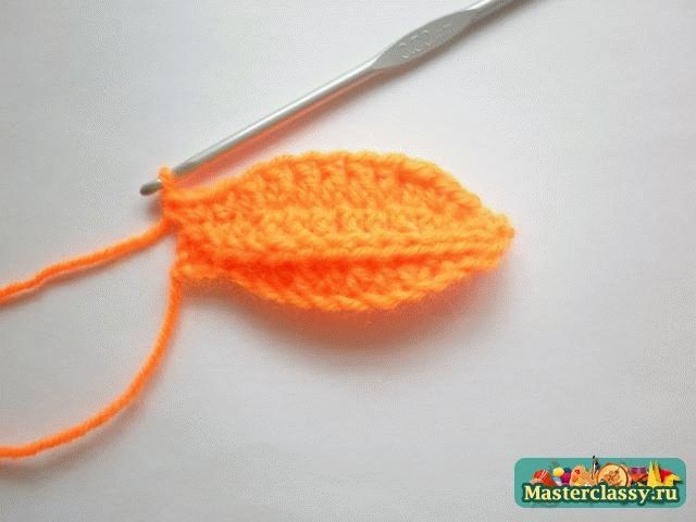 Дальше вяжем вдоль цепочки 2 соединительных столбика, 1 полустолбик с накидом, 4 столбика с накидом. Один листик мы связали.![]() В конце крайние листочки соединить между собой столбиком, нить закрепить и отрезать ее длиной 15 см. ![]() Оставшийся конец нити вдеть в иголку и пришить к тыкве по центру, оставляя самые краешки листиков не пришитыми. ![]() Для вязания хвостика наберем 5 воздушных петель и провяжем по всей длине цепочки 4 столбика без накида. Хвостик также пришиваем в центр лепестков. Тыковка готова!»За мастер-класс огромное спасибо Наталье,выложившей его здесьhttp://masterclassy.ru/vyazanie/vyazanie-kryuchkom/16.. Вот такие вязаные тыквы получились .Первая-из шерстяных ниток,вторая-моя-из хлопковых. КУПИТЬ И ЗАКАЗАТЬ https://maj-ja.ru/kupit-i-zakazat/