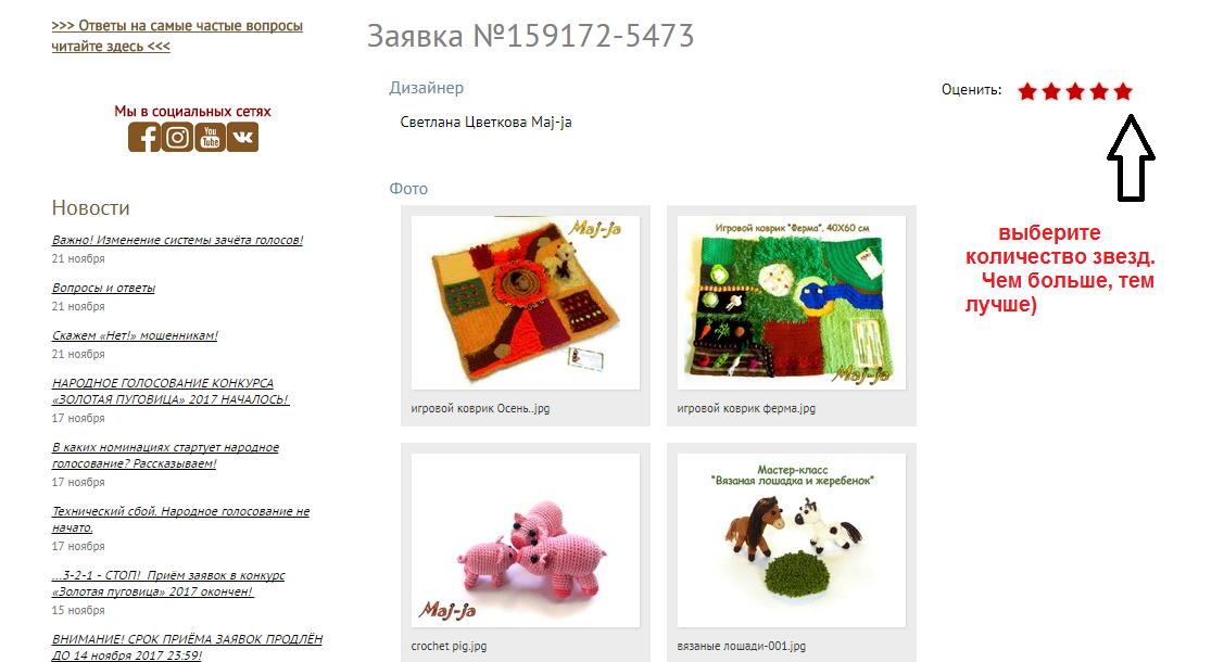 Дальше на страничке с моей заявкой http://craft-award.com/request/request_159172.html нужно поставить справа звездочки. Чем больше звездочек, тем выше рейтинг. На фотографии ниже видно, где ставить зведочки.